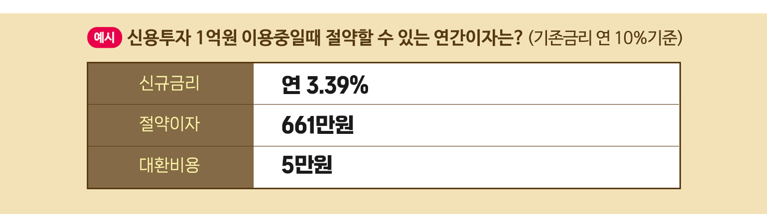사용기간이 늘어나 금리가 점점 올라가서 금리가 부담일때 금리가 낮은 증권사로 갈아탈 수 있게 도와드립니다.